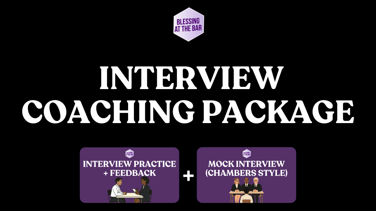 A discounted package of four coaching sessions covering applications and interviews for pupillage, scholarships, and legal roles. Includes two application review sessions, one interview practice session, and one mock interview, plus a weekly coaching call and free resources. After purchase you will receive full instructions and a unique package code to book all four sessions through the booking system.